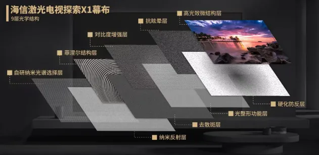 - 去散斑層: 專為雷射電視設計,能大幅減輕雷射光源容易產生的細微散斑,讓影像純淨平滑。