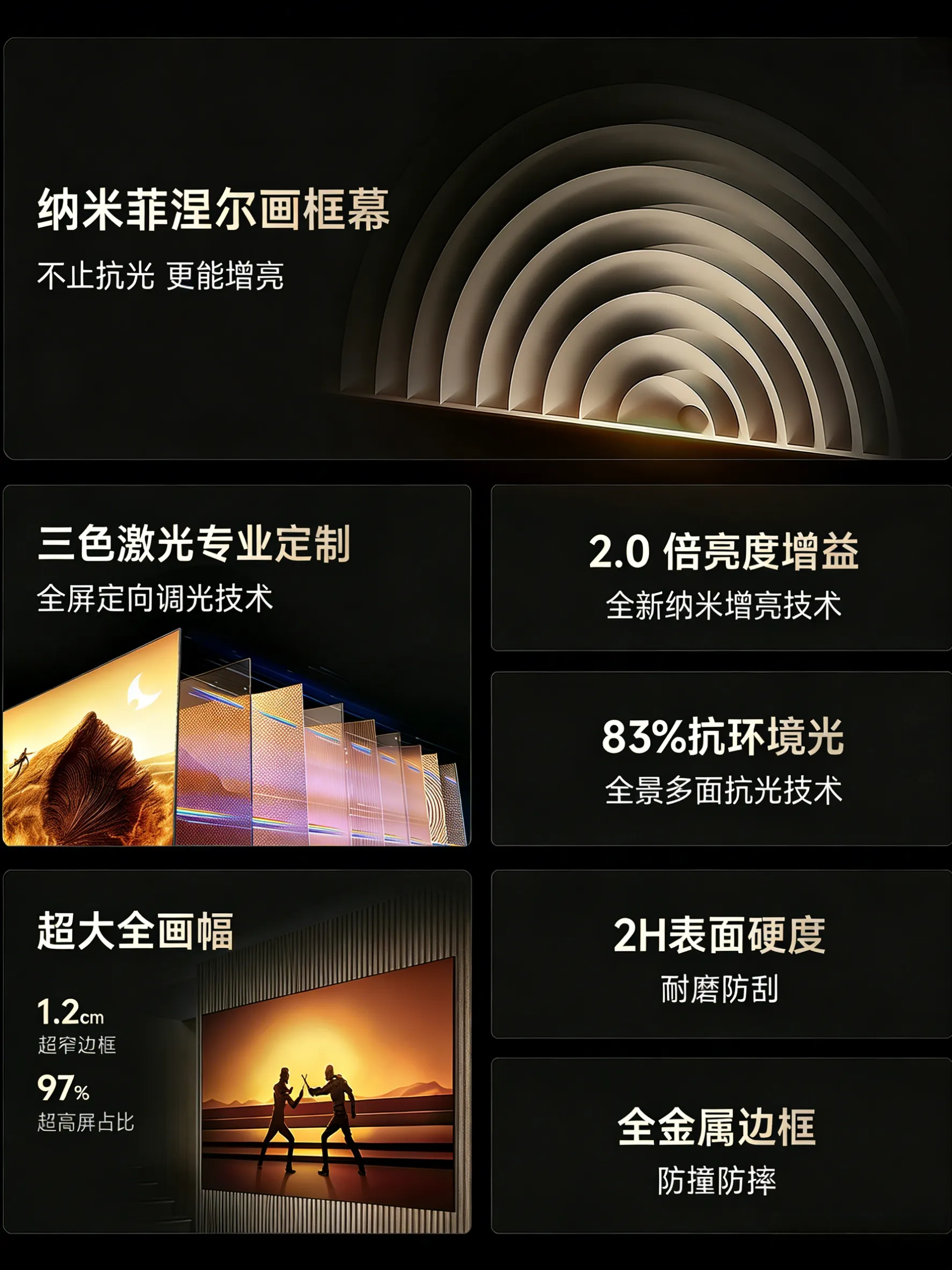 Hifeel H100 採用最尖端的第四代奈米菲涅爾技術,正式告別傳統布幕無增益、無抗光的困境。